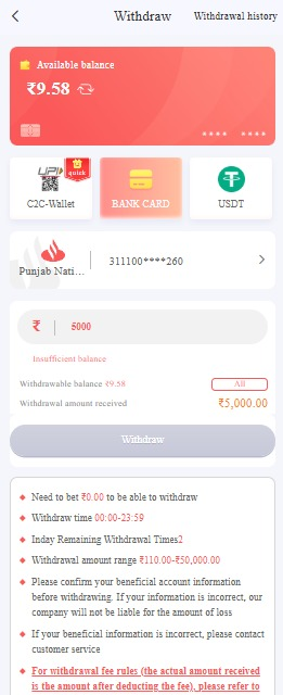 110 rupees is the minimum withdrawal amount.