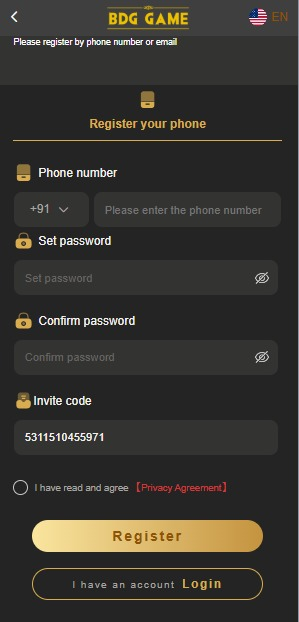 - Click the button above to Register for BDG Game. It will immediately launch the registration page.